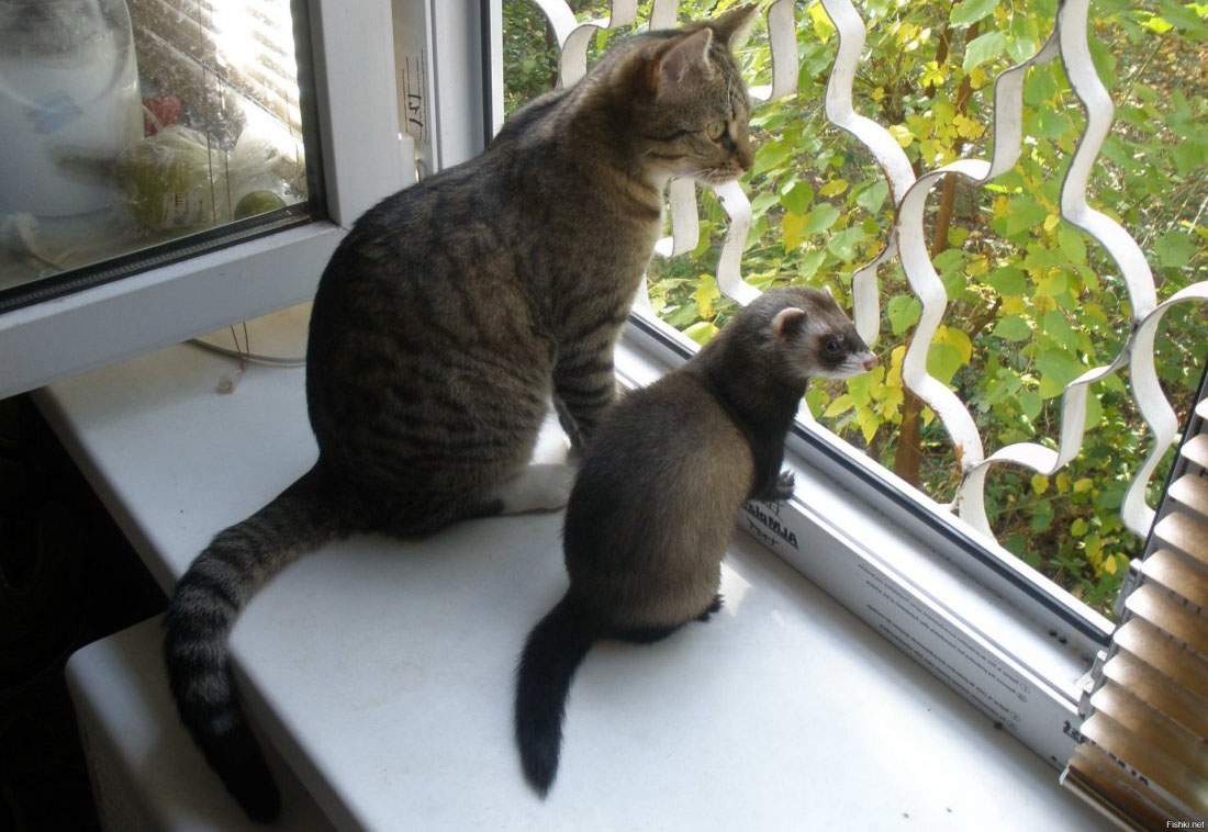 Relations between ferrets and cats can develop in the most unpredictable way - there can be a great friendship, and absolute indifference and aggression.