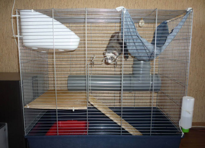 So that the pet is not boring, in a cage you need to hang a few hammocks in which the ferret will spend all your free time. If you have a large house or a spacious apartment, it is better to build something like a zoo pen - in this case, the ferret will have ample space and the need for a pet to walk completely disappears. In such constructions it would be useful to hang ladders and ropes.