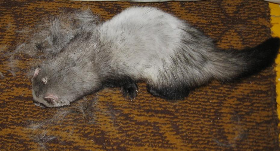 If you do not plan to breed ferrets, the female is best sterilized. - at the time of the hunt, she is extremely aggressive and if she cannot get the male, she soon stops drinking and eating, falls into apathy. This is accompanied by loss of hair, sometimes even to alopecia.