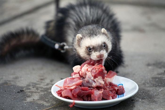 The duration and quality of life of a pet directly depends on its nutrition. In their natural habitat, ferrets eat birds, insects and small rodents. At home, to adhere to such a regime is hardly possible, therefore, breeders transfer their pets to finished feed.