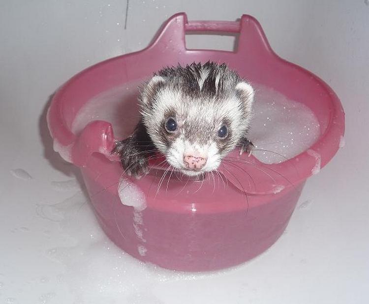 Ferrets love to take water procedures, but after bathing they have a more pronounced characteristic sharp smell. Because of this, pets should be bathed as the wool gets dirty. Bathing can be carried out in a not very hot bath or in the shower. When bathing using a special shampoo for animals. Be sure to cut your pet's nails every month. This should be done very carefully so that the animal does not hurt.