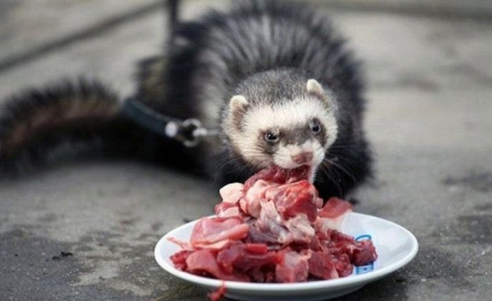 So, to increase the lifespan of ferrets, great attention is required to pay for its nutrition. The body of the animal poorly perceives plant food. The basis of the diet should include offal, fish (boneless), raw meat. Products should not be with a mass fraction of fat above 3%. As a treat, you can give a little curd or cheese. It is strictly forbidden to feed ferrets with fatty, smoked or fried food, sweets, nuts, chocolate, flour, bakery and confectionery products.