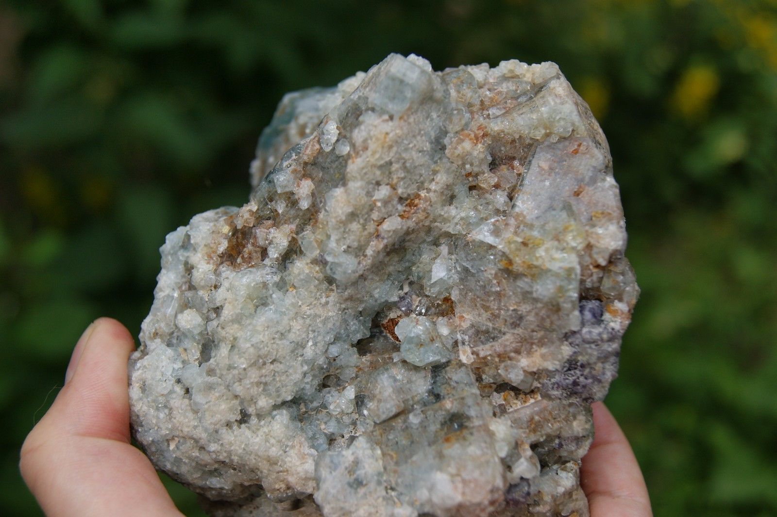 White, green and gray shades give the stone chlorine contained in it. The abundance of water gives the mineral blue, white and purple hues.