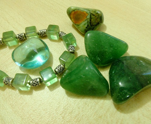 - Green. Its second name is Fuchsite. The stone was named after the famous mineral explorer I. Fuchs. You can find different colors, ranging from the brightest light green tones and ending with a rich green color. Sometimes a fuchsite can be confused with no less demanded jade and jadeite, but it can be easily distinguished from them by bright and shiny particles that become especially noticeable in the sun. The composition of fuchsite can be called the most reliable, if we compare it with other colors. The green stone talisman can be chosen by people whose professions will be directly linked to constant mental activity. It will also serve as a wonderful amulet that can attract money. The green mineral clarifies the mind, drives away fears of failure and helps to properly focus on important matters, and also is considered the patron saint of all lovers.