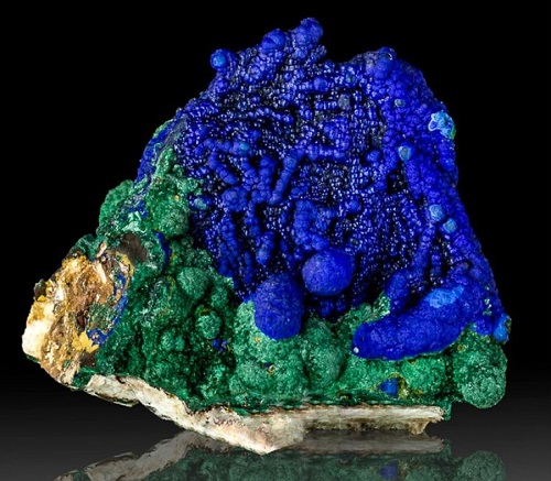 Azurmalahite is formed as a result of the accretion of azurite and malachite, the deposits of which are often located next to each other. The appearance of such a tandem is explained by the fact that both breeds have a similar structure. The color of the resulting azurmalachite is usually bright. It combines several colors at once: green, blue, blue, lime, cornflower blue and brown.