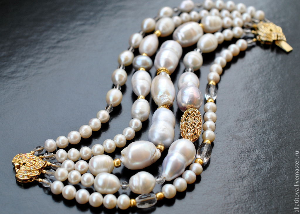 Pearl lovers and connoisseurs know that, in addition to spherical beads, natural mother-of-pearl can take various forms - drop-shaped, asymmetrical, oval, with various irregularities, pear-shaped, ellipse-shaped and others. Exactly such The pearls of the original, fanciful forms are called baroque.. The name is derived from the style in art - Baroque, literally translated from Italian, as "strange", "quaint", "having a tendency to excess". However, the translation of the word “baroque” from Portuguese, which means “unpolished”, “not processed”, is more appropriate for this type of pearl.