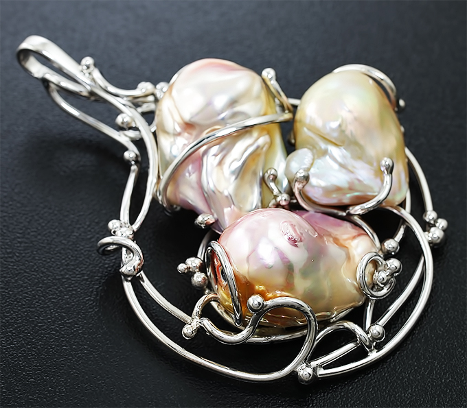 It is considered that baroque pearls are ideal material for beginner jewelers who only acquire the skills of fine craftsmanship.This is partly true, but if a good master sees a large baroque pearl of successful form, he will definitely embody his artistic idea in it. A jewel with such a unique pearl will definitely become exclusive, because there are no two baroque pearls of the same shape and color in nature.