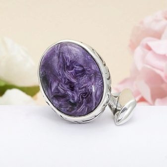 The persistence of charoite is expressed in its various parameters. The stone is not only hard, but also resistant to moisture and aggressive substances.Charoite is very viscous and can preserve its color for a long time. The stone is well processed and looks great in both large and small products. It is used in cabochon type inserts and in a flat insert in brooches, pendants and rings.