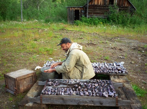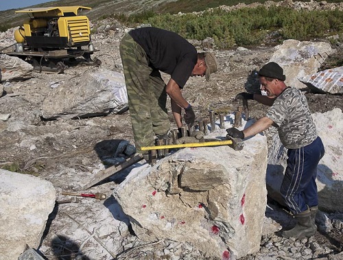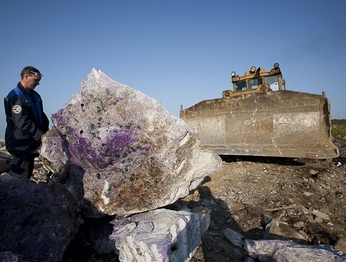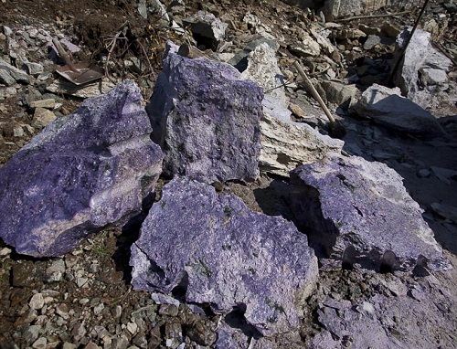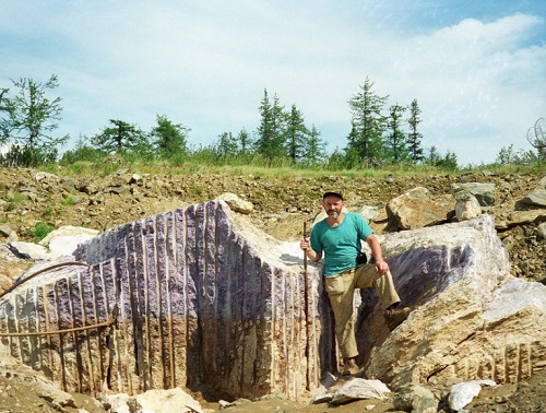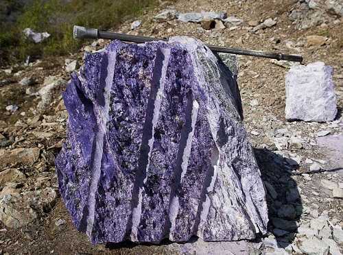 Already the discoverers noticed (and their colleagues in geology shared this opinion) that charoite was destined to have a great finishing and jewelery future. The problem was different - no one had yet imagined how large the mineral deposits were, how much raw material could be counted on. In the process of research, it was possible to detect a mass of boulders lying on the surface. Also, field exits allowed the establishment of a series of bedrock exits to the surface. As a result, it became clear that it makes sense to conduct a deeper search.