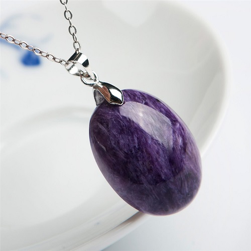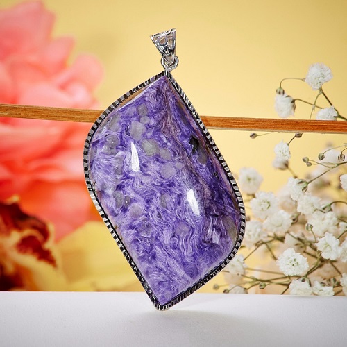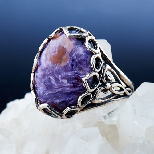 Experts in the field of extrasensory perception often argue that the “magic parameters” of charoite will grow if it is inserted into silver or at least just hung on a chain of silver. But the gold frame is not recommended to use. InoIt is claimed that charoite jewelry is indispensable for hypertensive patients and for those suffering from nervous disorders. It is often mentioned that small charoite balls should be clamped and rolled gently in the palms.