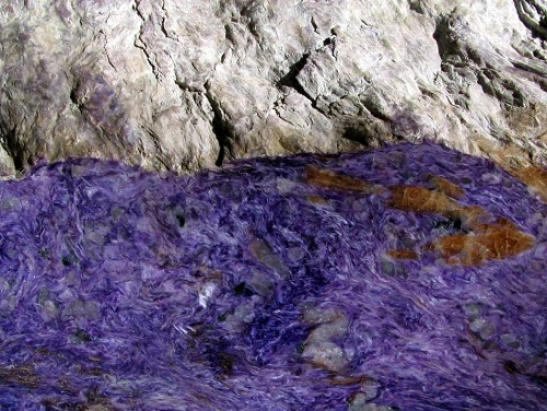 Although charoite is not a gem, it looks just fine. The main part of the rocks in this field are charoitites. They are painted in purple-violet tones. Surprisingly, charoite was found in the Far North, so the search was conducted in extremely difficult conditions.