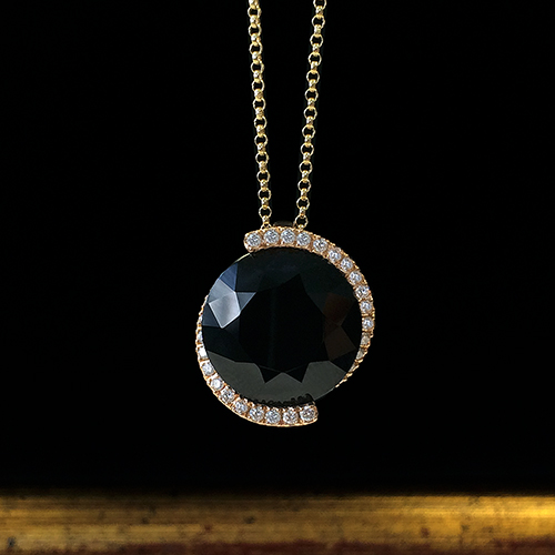 Black sapphire is rarely found in nature and surprises with an unusual tinge of shades. In the light, he plays with colors from dark green to dark blue, in the sun he gets a deep color scheme with blue.