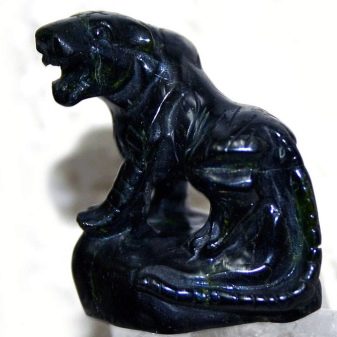 The black opaque stone is a boron-containing silicate, it has a conchoidal fracture, high hardness, perfect cleavage. But these characteristics do not prevent the stone from being the most difficult to process.