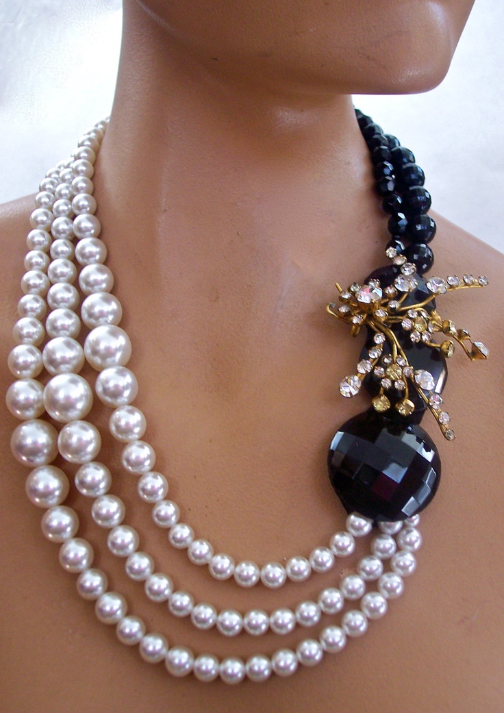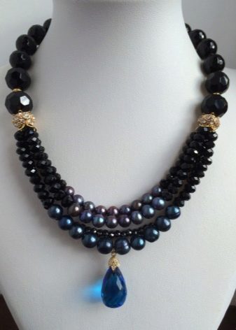In any case, the image should be elegant, tactful, the dress should not be sparkles and rhinestones, otherwise the cheap opulence of glasses will block the luster of natural pearls. The necklace of black stones is quite a worthy independent jewelry, which by its sublime radiance will give an image of elegance, refinement, femininity.