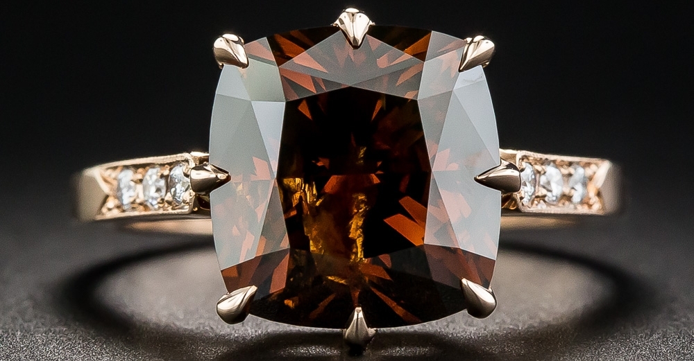 - Brown diamonds contain iron molecules. Stones can be from light brown, almost orange, to dark, saturated brown. Jewelry with them looks very original, but does not have a high value among the colored jewelry.