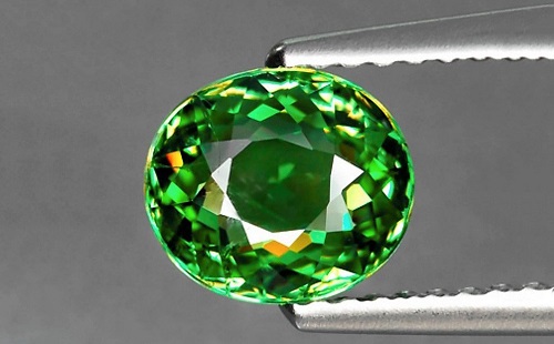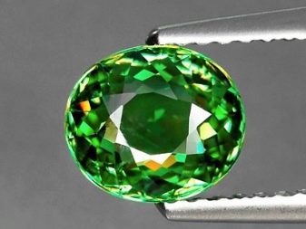 Today gem is still expensive. He continues to conquer the hearts of wealthy people and inspires jewelers to create exceptional masterpieces. The light that plays on the facets of the stone, even surpasses diamonds in brightness and expressiveness. Hue green due to impurities of iron and chromium.