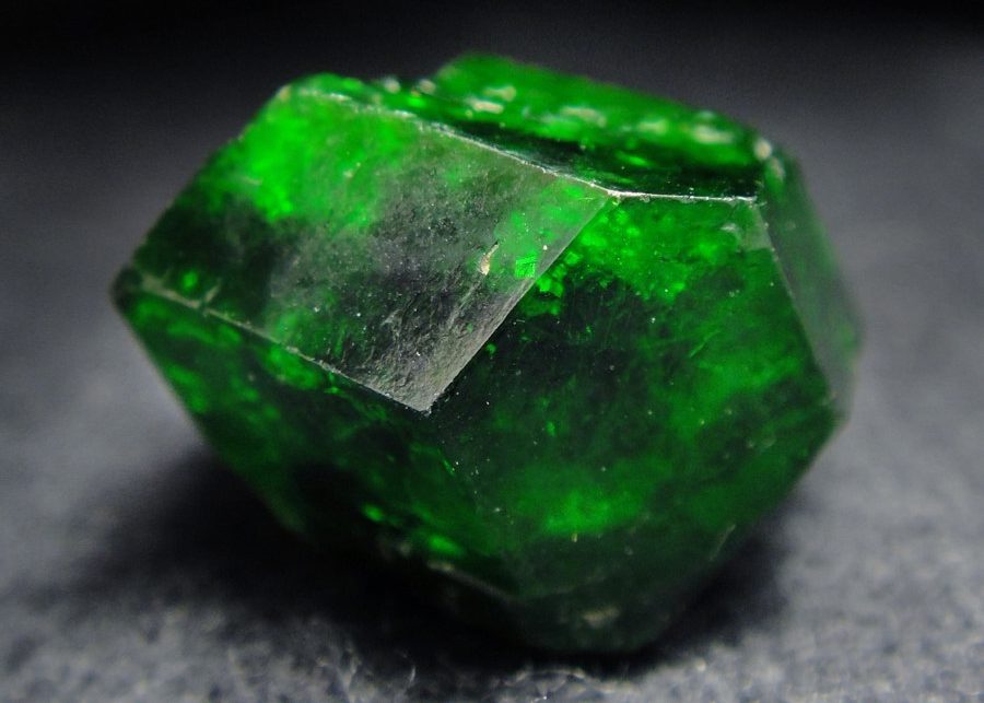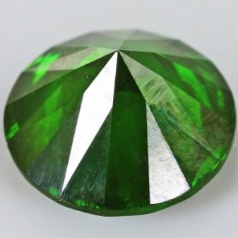 Although the pomegranate is known to all as a red stone, demantoid does not exist like this. Regardless of the shade, the green remains in it the main color nuance. Mineral is hard. This figure is 6.7-7 on the Mohs scale. The sizes of copies vary from a pair of millimeters to 1 centimeter. Crystals with large dimensions are extremely rare. Transparency and magical radiance stone gains after processing.