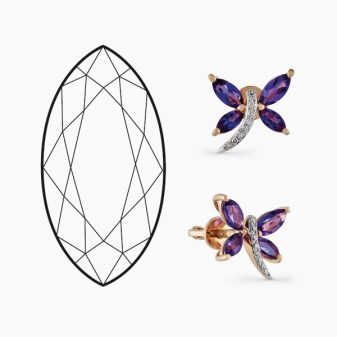 Oval cut with pointed ends. It is used in rings, earrings, pendants. 55 facets. Such a cut is considered “aristocratic”, refined taste.