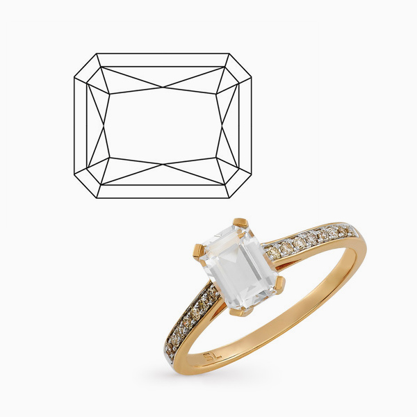 Rectangular cut. Up to 68 facets. Especially popular in the manufacture of rings. Non-rounded corners are quite fragile and they need a reliable frame.