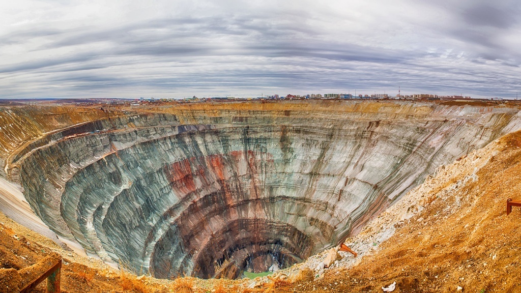 Open careers. This is an industrial mining method. Huge stepped grooves in the ground where excavators and mining trucks operate.
