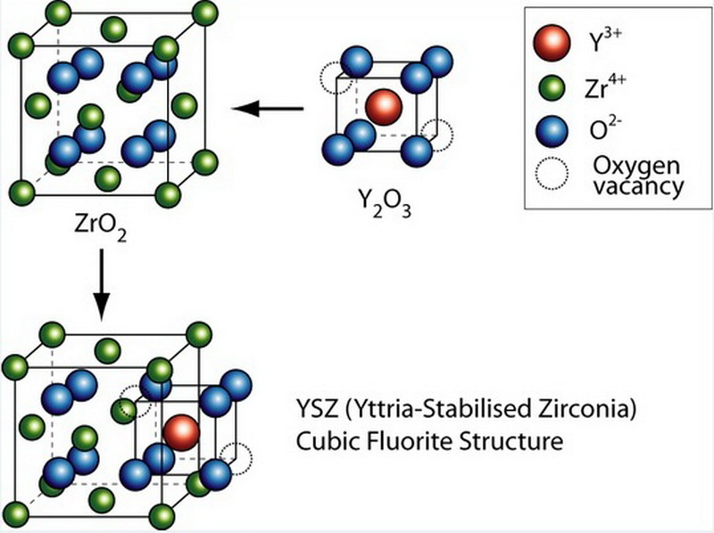 Zirconia itself is colorless, therefore To give the crystals the desired color, they are colored with transition and rare earth elements. This happens in the process of manufacturing a mineral, the crystallization of which is carried out under laboratory conditions using the technology of cooling melts, in which the crystallization rate is from 8 to 10 mm / h.