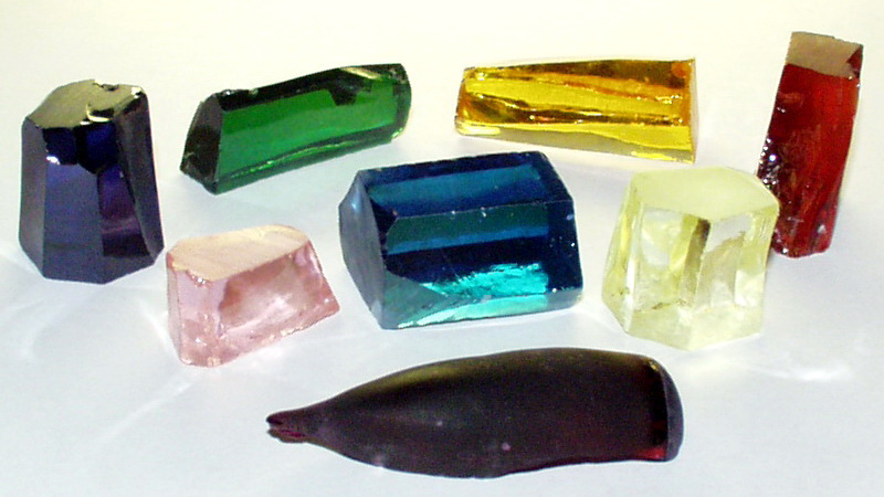 The dyes used are oxides of such metals as cerium, giving the fianit yellow, red and orange hues, chromium, giving a deep green color, neodymium and erbium, dyeing the crystals in purple and pink tones, respectively, and titanium, giving a golden brown shade .