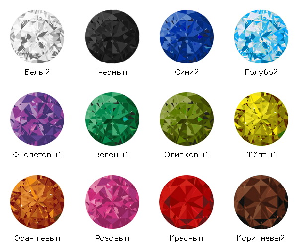 The high popularity of cubic zirconia and its ability to masterfully simulate a number of precious precious minerals is due to the ability of the crystal to dye in different shades and good color fastness. Black and green stones are in particular demand. Next comes blue in popularity, as an option - blue, red, pink and purple, which also look great in jewelry and impress owners with even and deep shine.