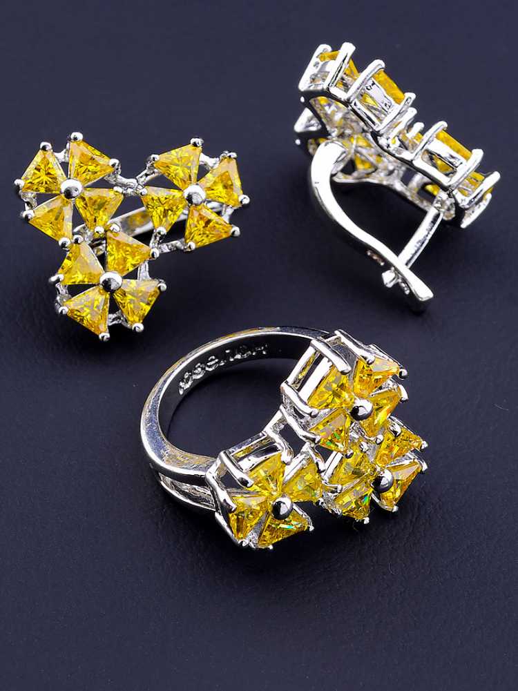 Visually, the crystal looks very harmonious with topaz, amethyst, citrine and garnet, and only emphasizes their bright shine and nobility. As for the metal frame, the cubic zirconia looks great in gold, silver and platinum framing, favorably shading the central gemstone and giving the product a high artistic value.