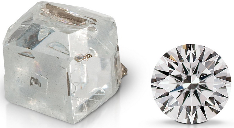 The density of stones is also not too different, and is 3.5 g / cm3 for diamond and about 6.5 g / cm3 for fianite. As for the index of refraction of light, then the diamond and its non-precious analogue are almost the same and are 2.4 and 2.25 units, respectively. But the weight of an artificial crystal, by contrast, is significantly different from the weight of the diamond and exceeds it by almost 60%.