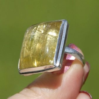- To maintain the beauty of the glossy surface, it is enough to wipe the heliodor with water with the addition of ammonia and soap. It is important to dry the jewelry to prevent moisture accumulation.