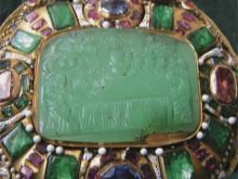 The history of the stone is replete with interesting facts, legends and beliefs. In antiquity, chrysoprase was considered a talisman of the victorious warriors.The stone was honored by Alexander the Great and carried the talisman with him, believing that it was a powerful source of energy, endowing and endurance and courage that could predict the future. Greek artists invariably depicted Macedonian in a belt with a buckle decorated with chrysoprase. The inhabitants of ancient Rome believed that the owners of such a talisman were protected by Venus, granting infinite youth and acting as a guide to the heavenly abode of the gods.