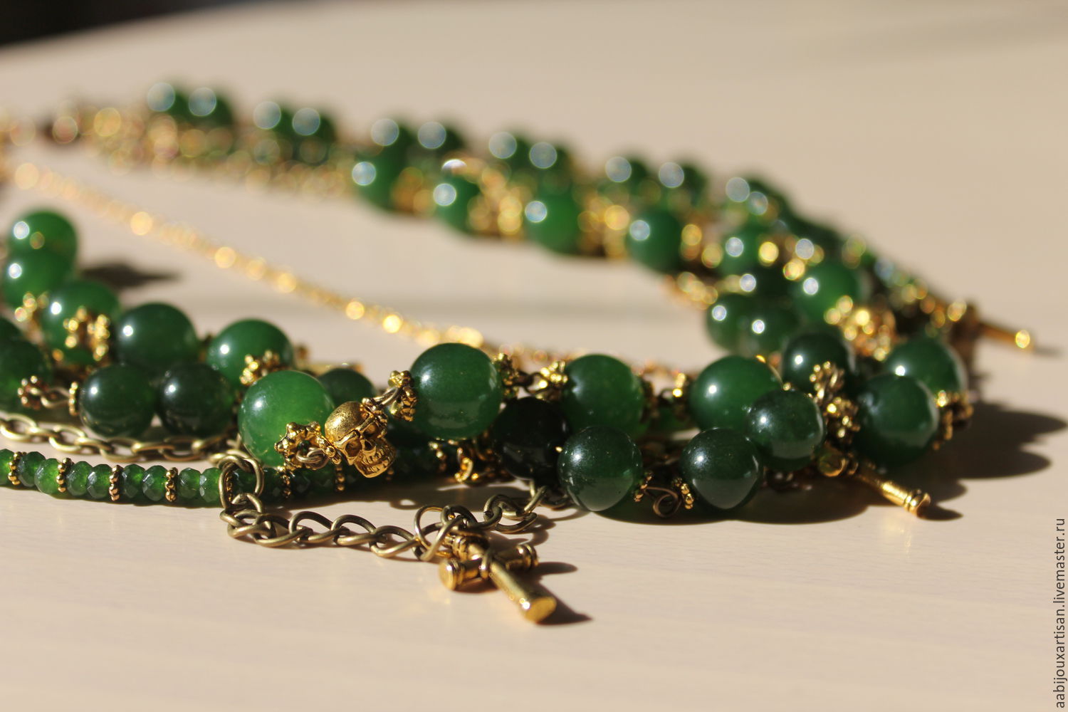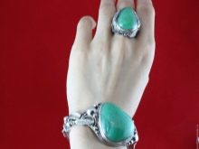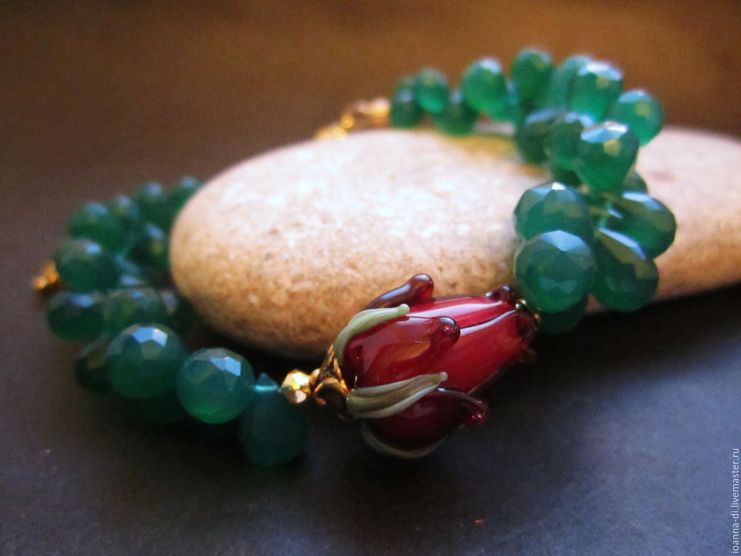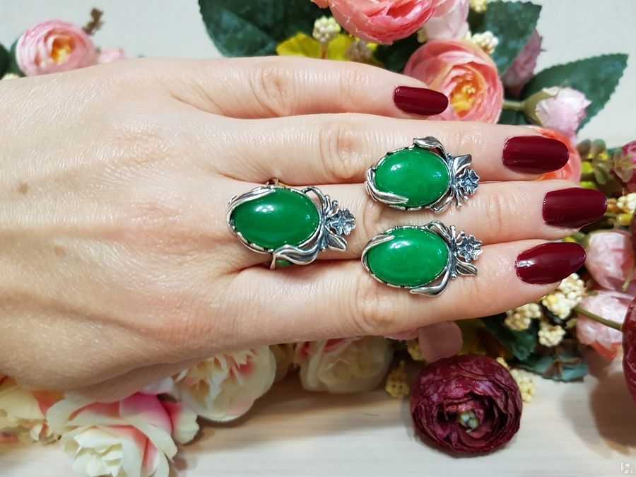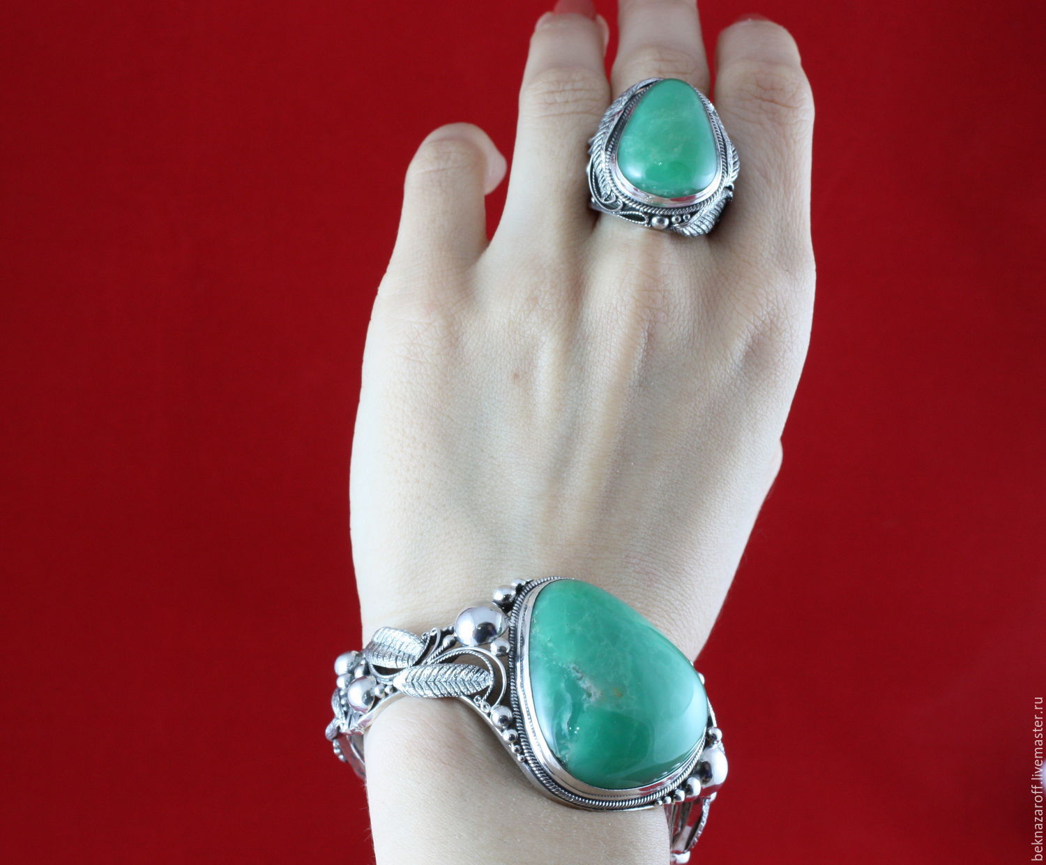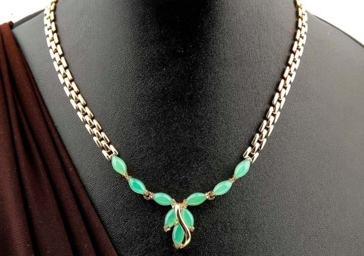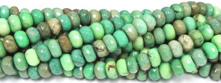 Chrysoprase allows a wide combination with other minerals and products from silver and gold. Jewelry with him can be worn with pomegranate. The stone looks great in the ring on the finger. The mineral is also widely used as a rounded inset (cabochon) in a wide variety of jewelry. In the East, chrysoprase rosaries are popular.