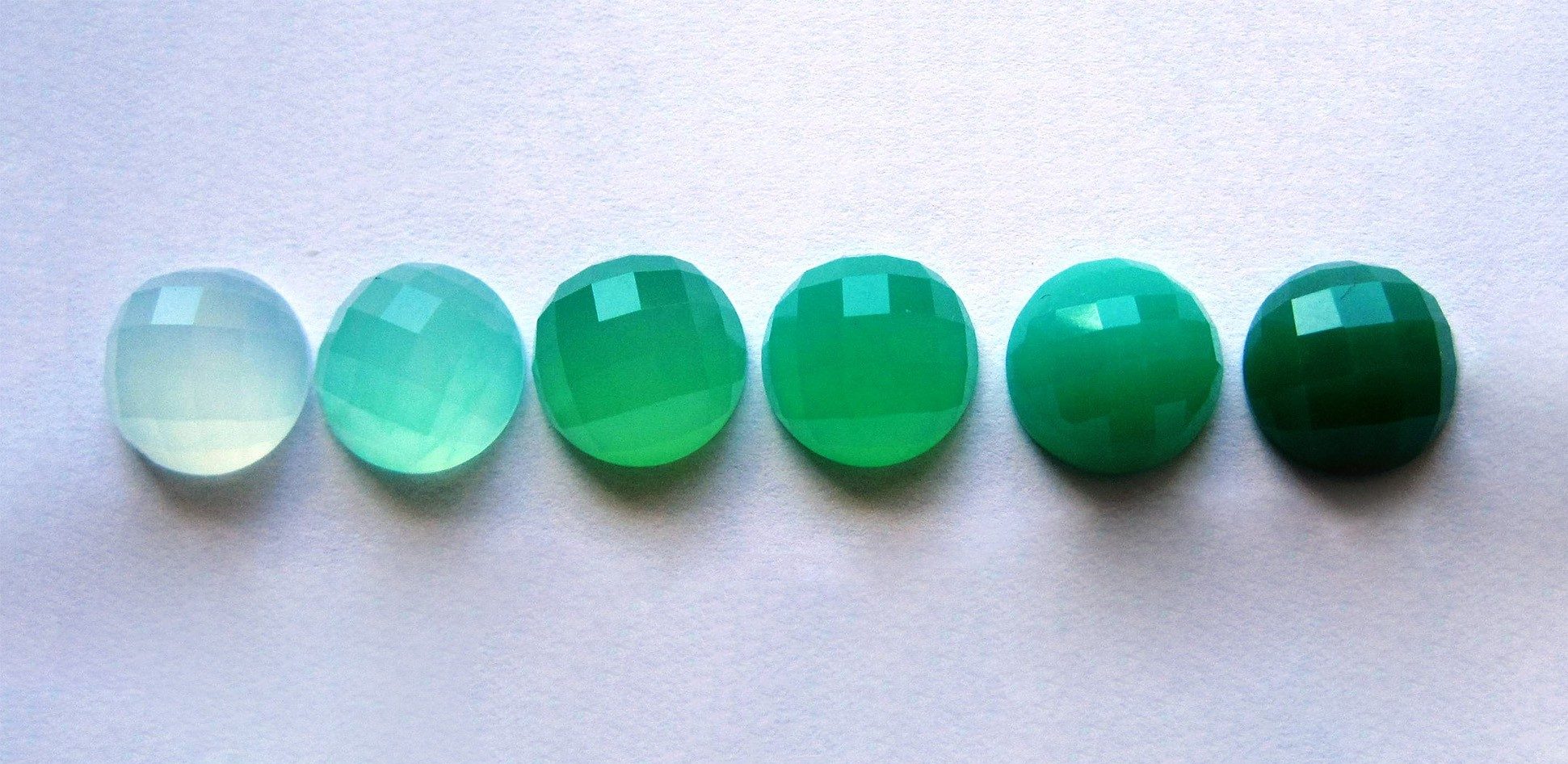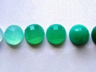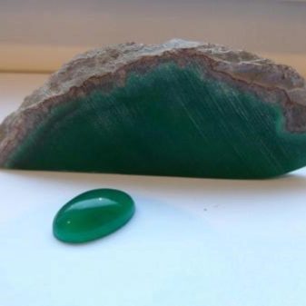 Artificially colored chrysoprase is called green onyx. It may be lemon green or blue. In Zimbabwe, green chalcedony is mined, the color of which is due to chromium impurities.. It is called green agate or mtorolitom.. Separately, blue chrysoprase is isolated, which contains inclusions of chrysocolla. Recently, the stone has a large number of imitations made from cheaper chalcedony. Imitation dyeing is performed using chromium or nickel salts.