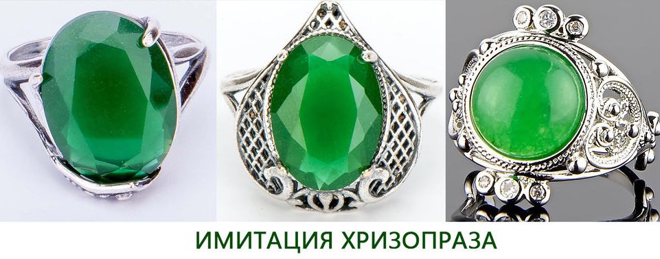 Common counterfeits today are Chinese-made synthetics (ketsite). Often as an artificial cheap mineral, painted in the desired color with nickel salts, is sold as chrysoprase. In addition, the natural mineral is easy to confuse with another stone: emerald, cat's eye, jade or jadeite. To avoid deception and mistakes when buying chrysoprase, it is important to possess some knowledge.