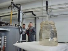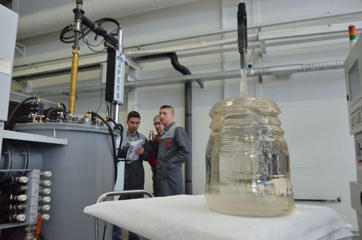 The size of microparticles in the composition of the mixture from 1 to 20 microns. A portion of the powder is poured into the bunker, which has holes. Through them, substances enter the furnace, where hydrogen is burned. The mixture is melted and grows the seed crystal.Capacity for seed rotates, providing uniform growth and warming up. As it grows, the seed is at the bottom, and the upper part is transformed into faces.