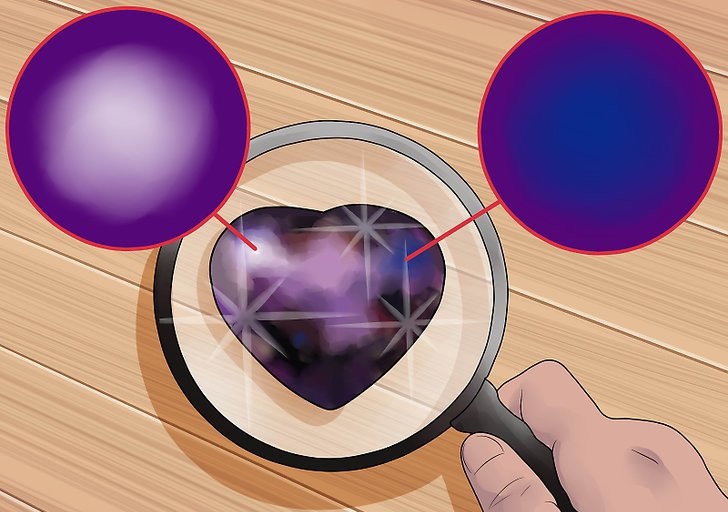 - Magnifier Using a microscope or a magnifying glass you can detect microcracks or the inclusion of gas bubbles. Artificially grown samples cannot have them. Also on the surface of artificial minerals are uneven lines - they occur when grown in laboratory conditions.