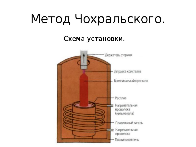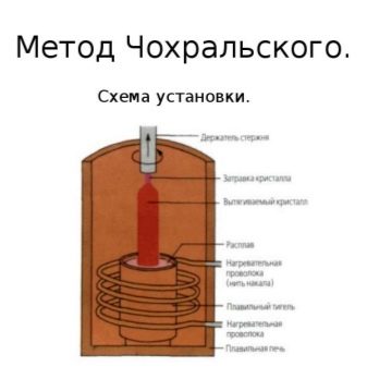 - Czochralski method - production of high quality mineral. Single crystals are produced by a method of smoothly pulling the crystals up from the surface of a significant amount of the initial melt.