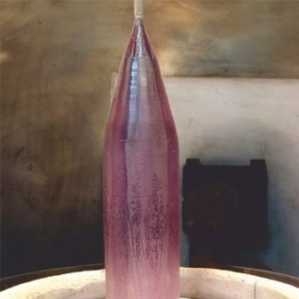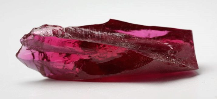 The mineral is grown both in crystals and in "beads" (cylinders with a pointed end). A synthetic product is of high quality, but it can often contain bubbles and inclusions. Gemologists experts distinguish synthetics from natural minerals with the help of a special device, observing curved growth lines. Natural stone has growth lines straight. In nature, ruby has a different origin, but is more common in placers.