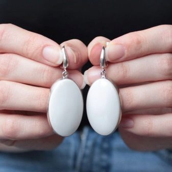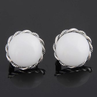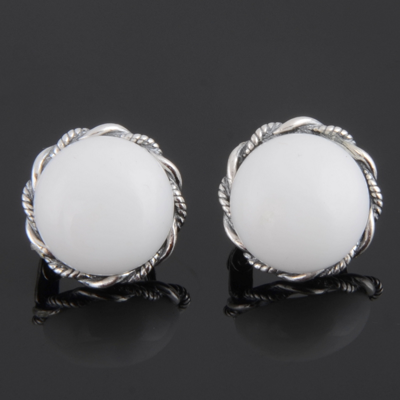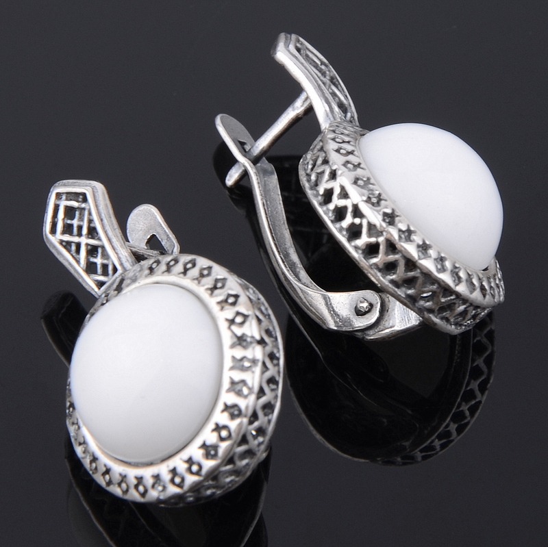 Earrings with white cacholong look elegant. They can be worn for any occasion.