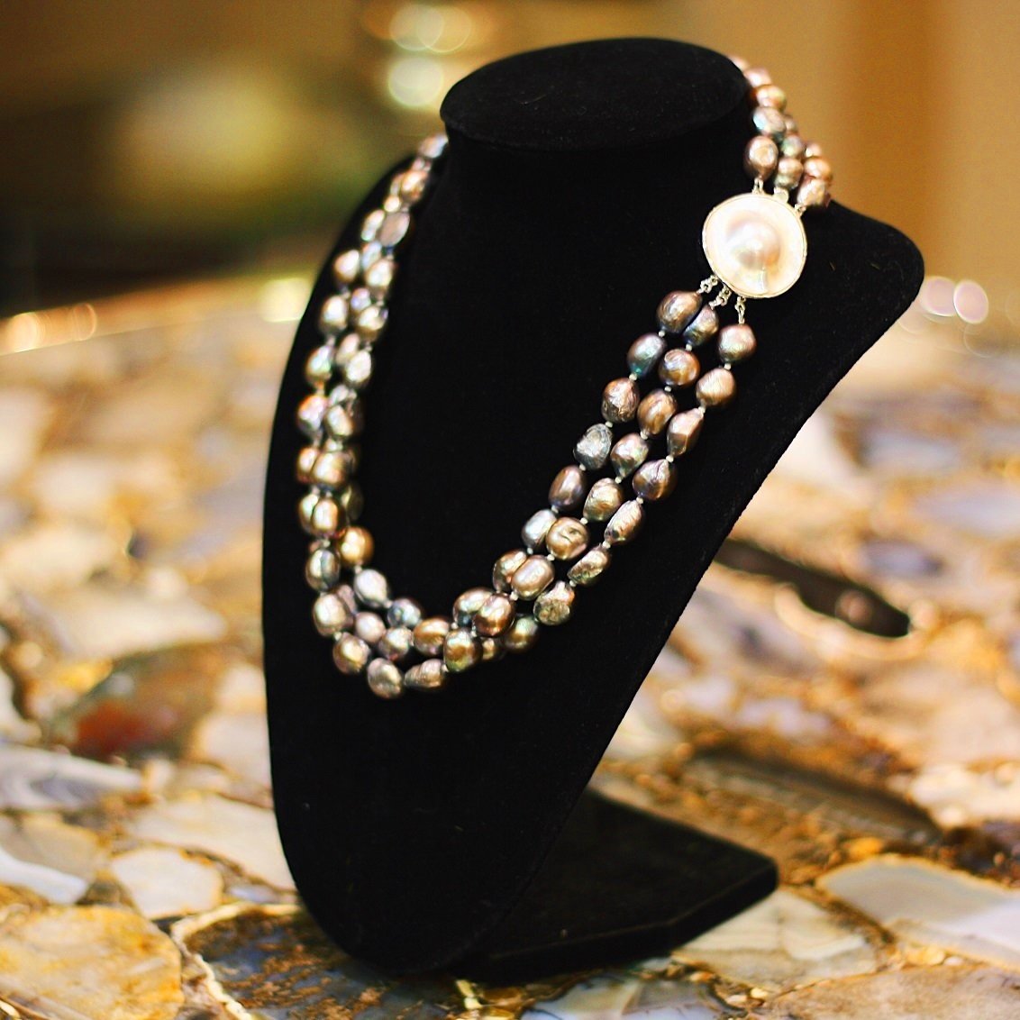 Mussels growing pearls inside their shells live in warm sea and ocean waters. They can be found near the coast of South America, Australia, Japan, India and others.