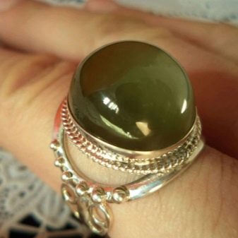 - Katsayt. This material was invented in China. It is most often green in color, light and durable. Unlike a natural stone, a cat site has a bright, even color and a dull band in the center. In the United States and China, high-quality counterfeits are made from the cat site.