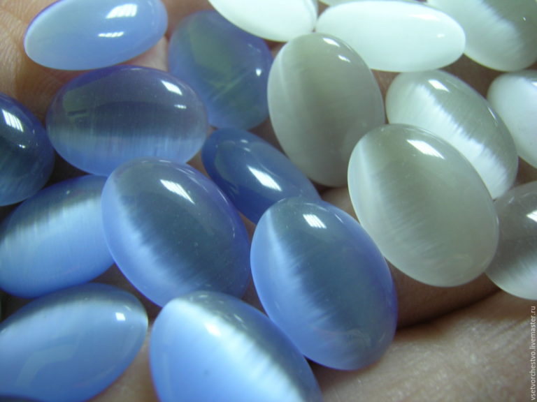 The cat's eye is called not only chrysoberyl, but also quartz, jade, tourmaline, moonstone, and scapolite. Due to this “cat's stone” can be pink, purple, blue, white, blue, gray, pink, black.