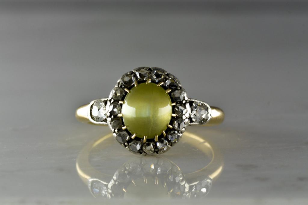 The cat's eye is under the auspices of the sun, therefore, it goes well with yellow, golden or red gems:
