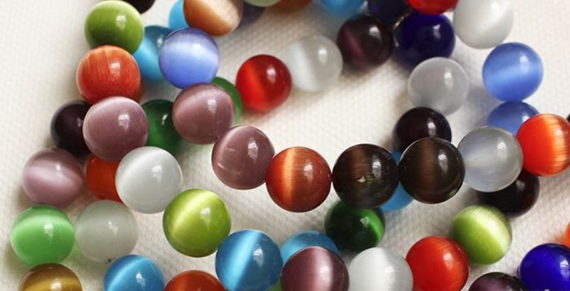 - Borosilicate glass. It is easy to distinguish by the bright color and clearly shown strip.Although glass decorations are more solid than those of ulexite, they are still fragile. This is the most common and cheap fake, which is usually used for making beads from the "cat's eye".