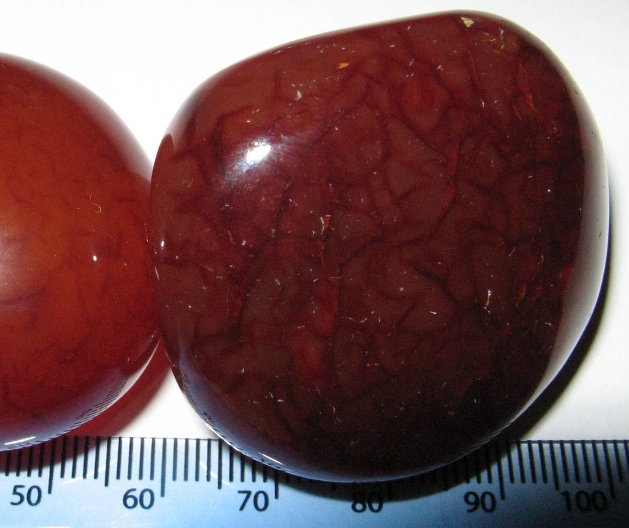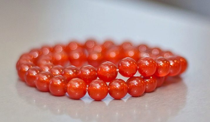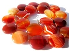 - carnelian - has a rich red color with a lot of stripes and streaks, dense in structure;