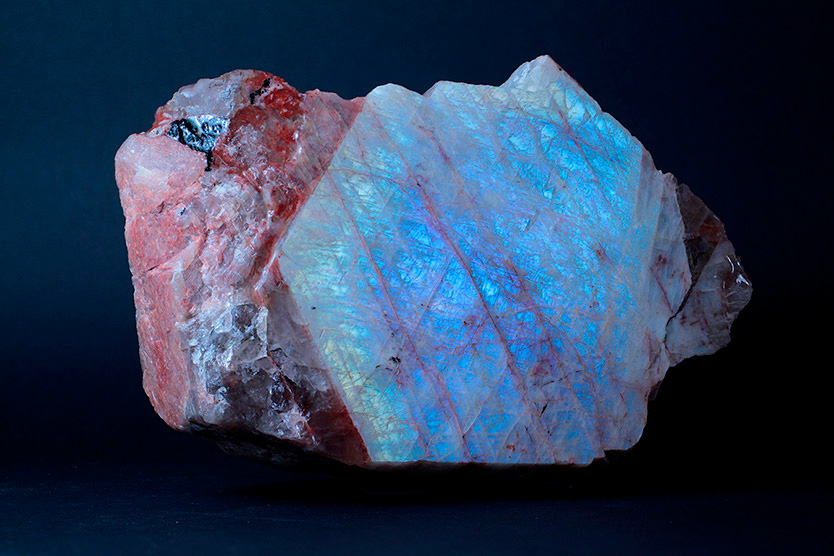 Extracted in nature, untreated stone has the shape of crystals resembling rock crystal. The stone iridescence is a mother-of-pearl shimmer, and the light inside it changes the pattern, so the ancient people associated this riot of color with flashes of fire and the light of the moon.