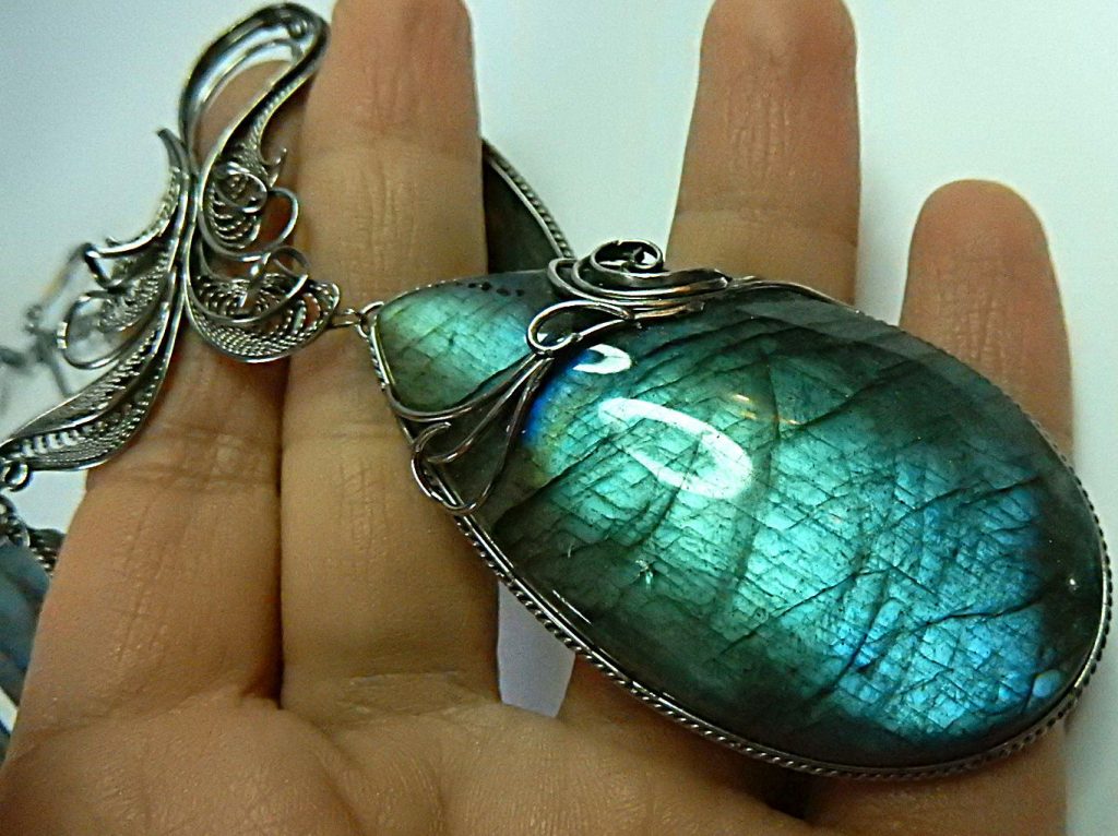 Among other Labrador names are such as jandarakand, selenite, aglaurite, pearl spar. Scientists attributed this mineral to plagioclases; its physicochemical properties have been investigated recently. Ornaments made of stone have a silver frame: the mineral is in harmony with this metal better in both appearance and price.. Labrador attracts not so much lovers of catchy sparkling jewels, as thin, addicted natures with a penchant for mysticism.