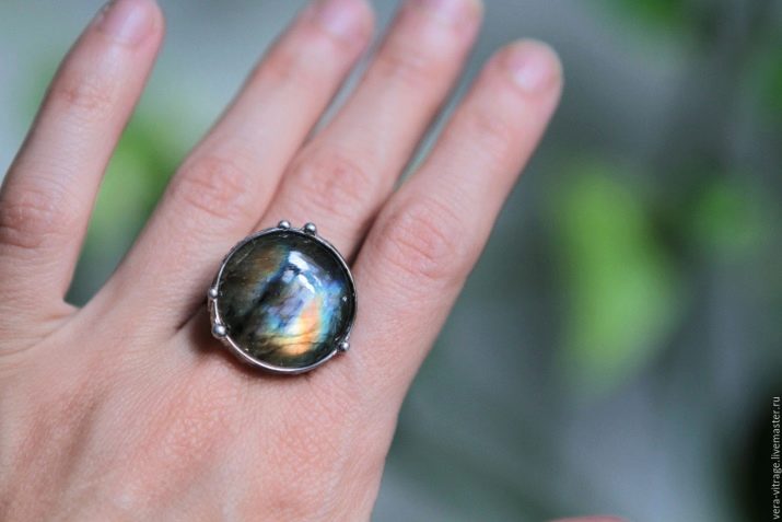 The combination of dark silver and dark labrador can literally hypnotize. These decorations are reminiscent of those found in films about magicians and elves. Looking at such a ring, it is difficult not to believe in the mystical properties of the stone, which ancient legends tell.