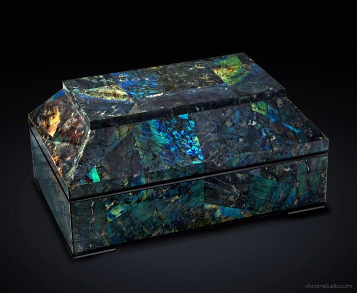 From this gem make a variety of furnishings and decor. In tsarist times, palaces were decorated with mosaics made of stone; boxes, snuff boxes, and other useful and beautiful objects were made of it. Despite the fact that other materials for the manufacture of interior elements have become more popular today, connoisseurs of natural materials may well purchase various products from this ornamental stone, for example, figurines. This photo shows an owl - a symbol of wisdom, which is also associated with the stone Labrador.