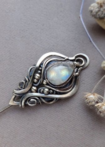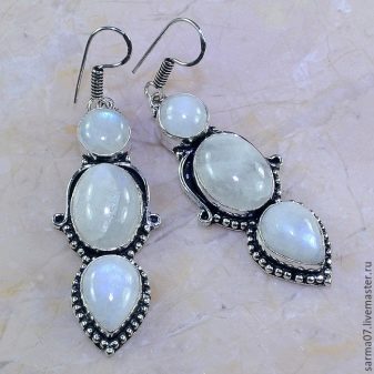 The moonstone is made: earrings, pendants, brooches, rings, necklaces, trinkets, bracelets. Silver is most often used for framing, since together with it, the qualities of the mineral are better manifested, and the impression of its enhanced shine is created. In the frame of gold is used much less frequently, but it looks very noble. Adular overflows are very spectacular, it attracts the eyes even with the slightest change of lighting.